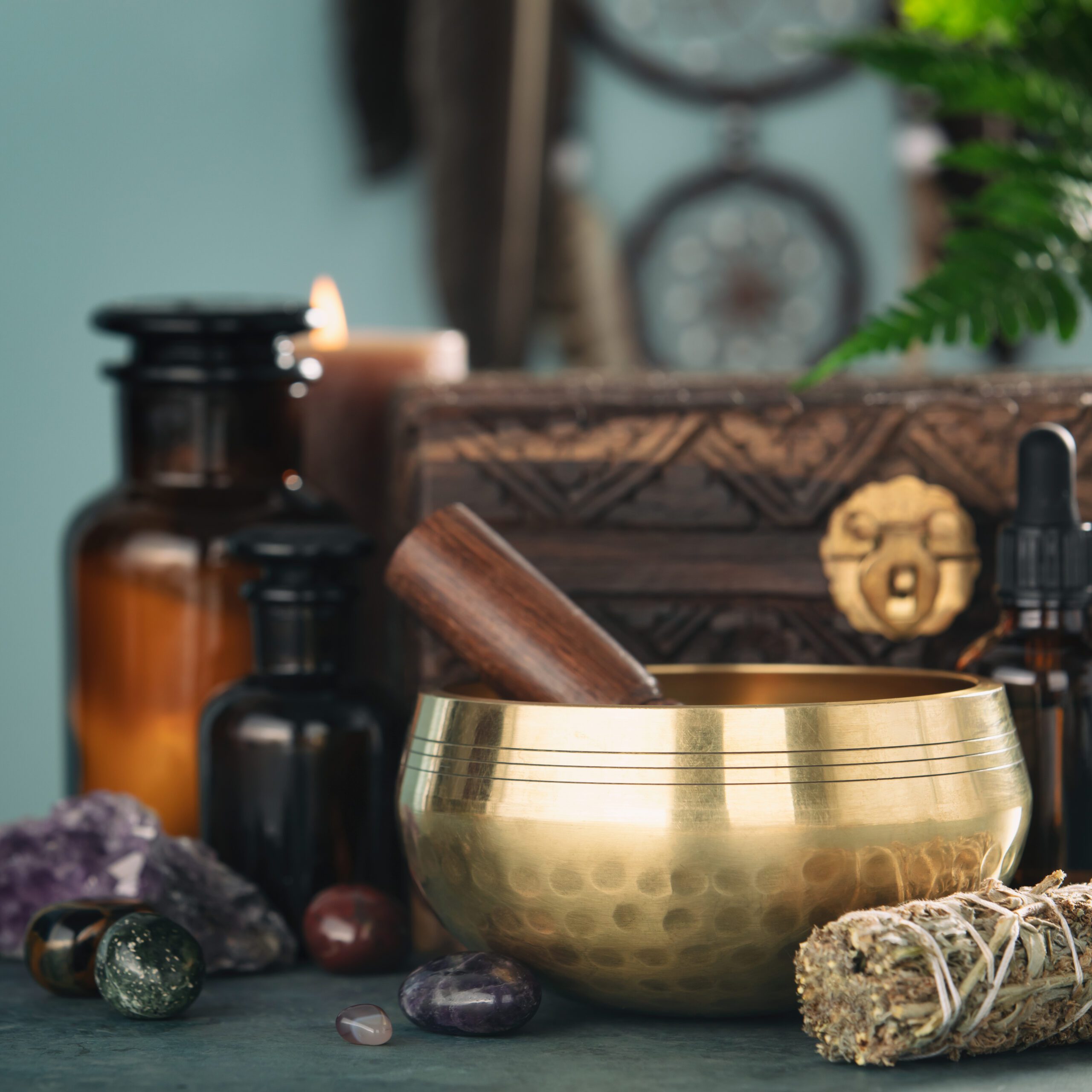 Gentle ambient sounds; soft music, nature sounds, singing bowls, water fountains, can help mask external noise and guide your mind into calm.